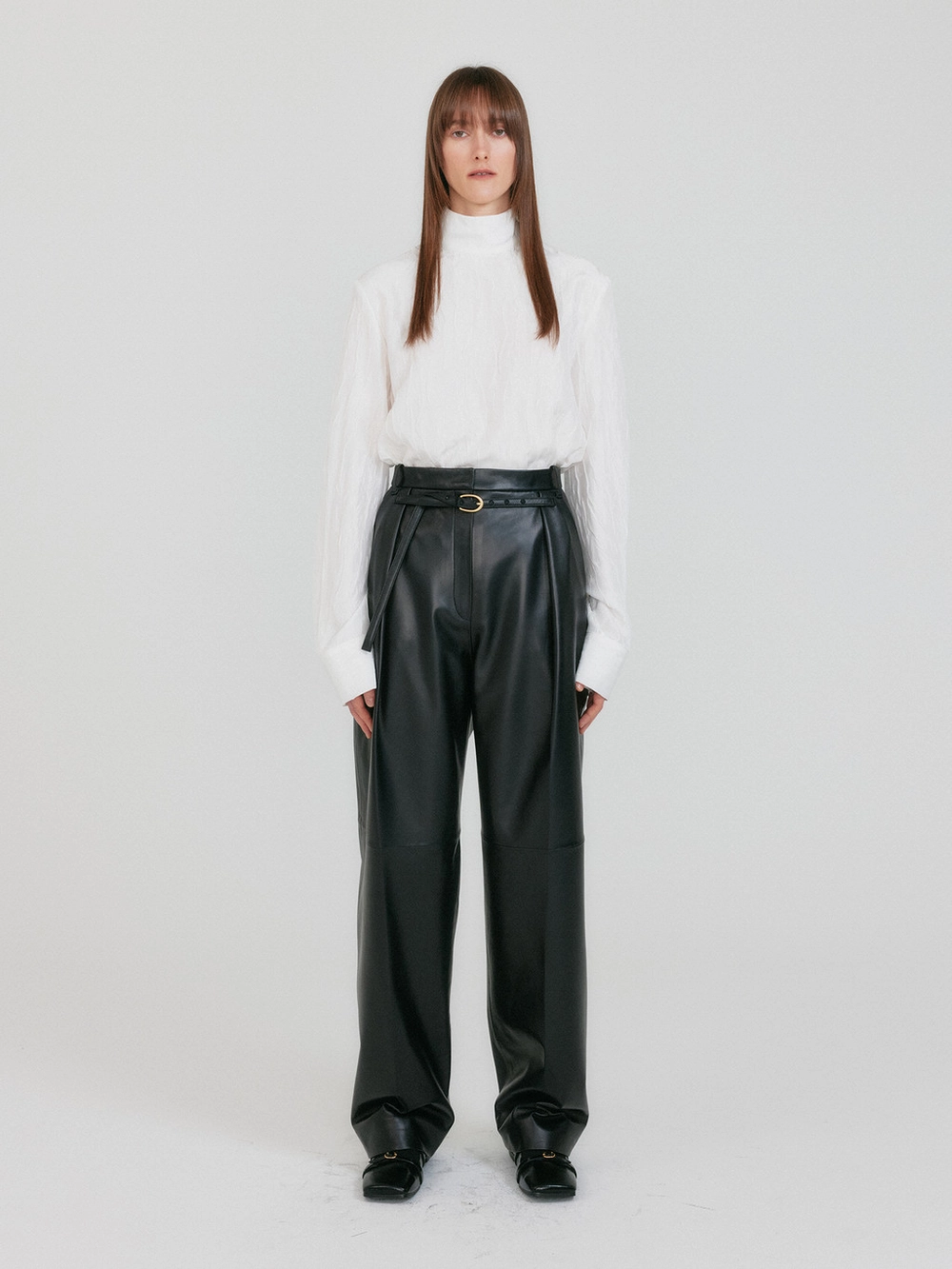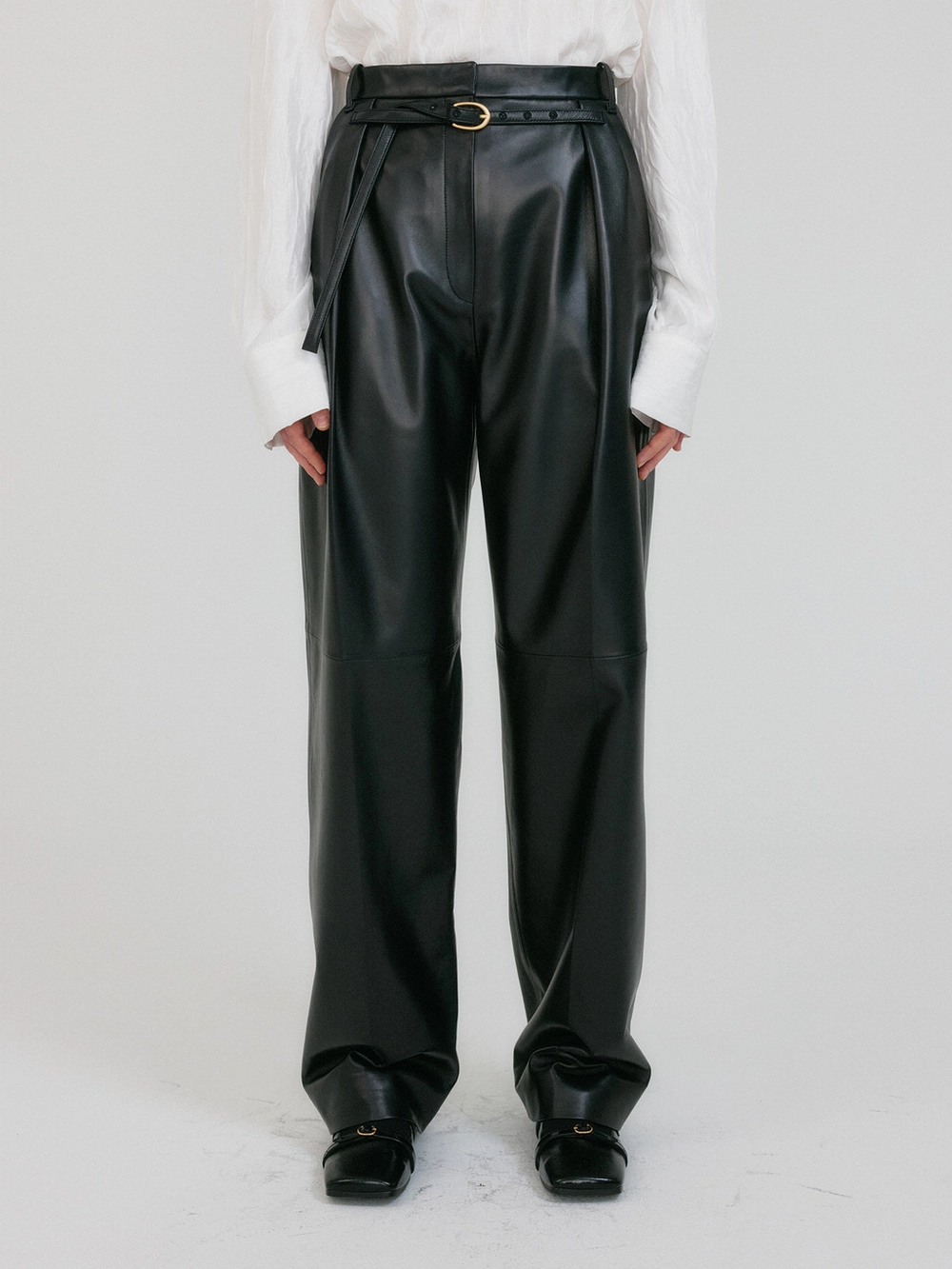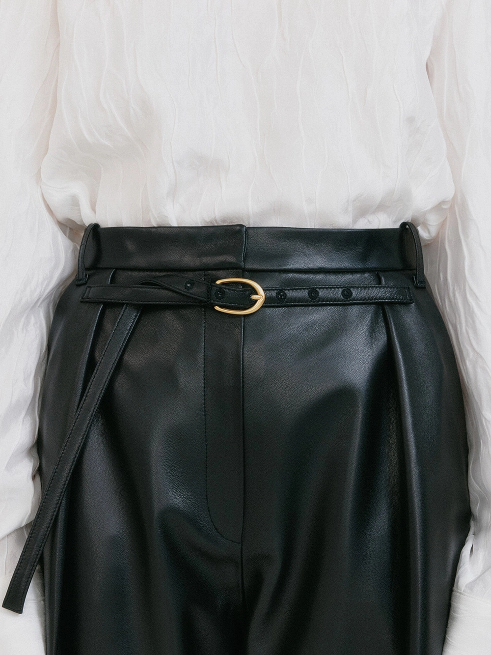 ZETTE Belted Tuck Leather Pants - Z-Black