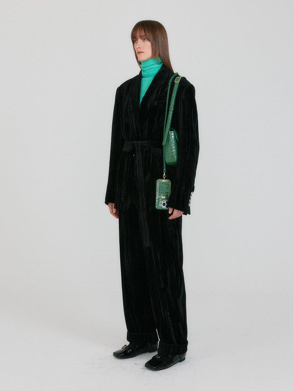 MATERIAL : Shell : Rayon 58%, Cupro 42% (Fabric from Japan) / Trim : Cotton 70%, Silk 30%
