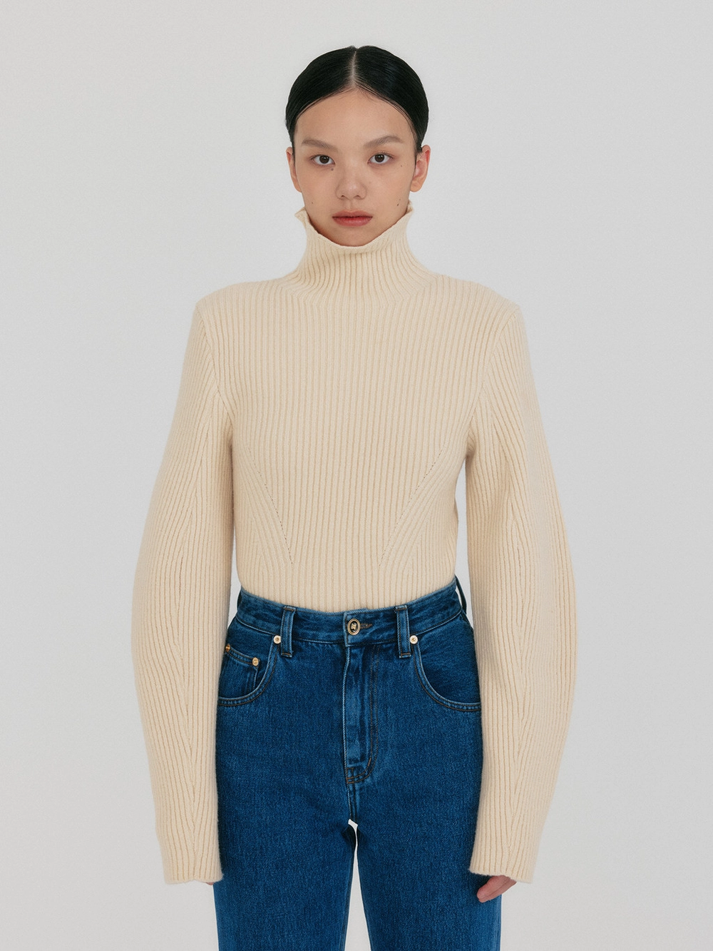 ZOVOUS Turtleneck Knit Pullover - Cream