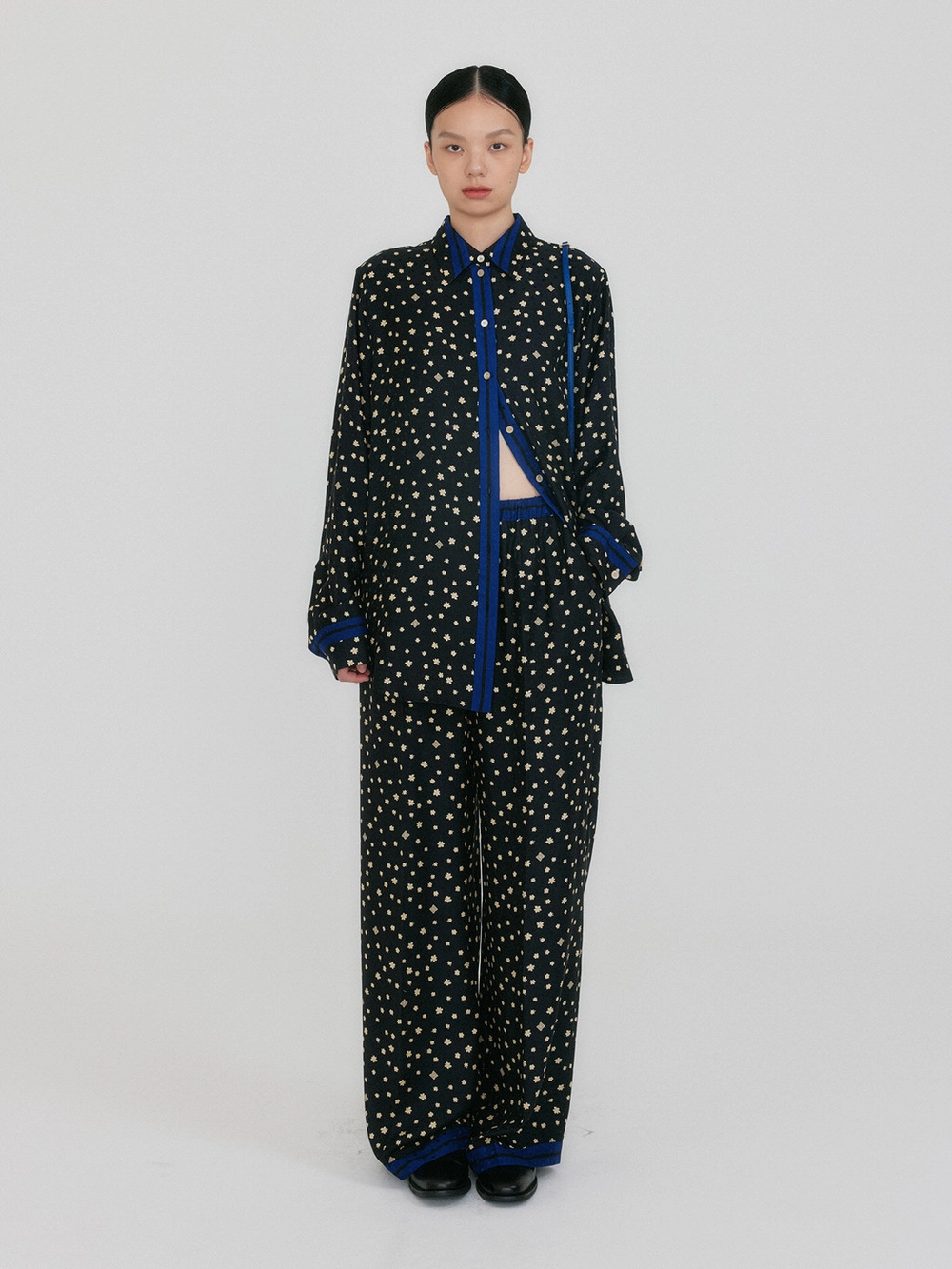 - The product worn by the model is a sample and is produced based on size S. However, there may be differences in total length and detailed sizes compared to the final product. Please refer to the detailed measurements provided on the product page for accurate sizing information.
