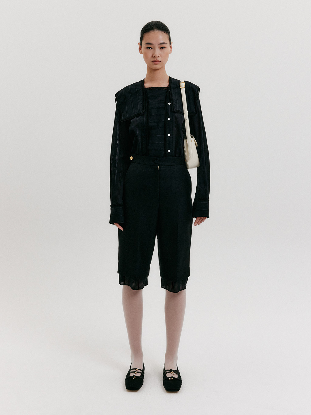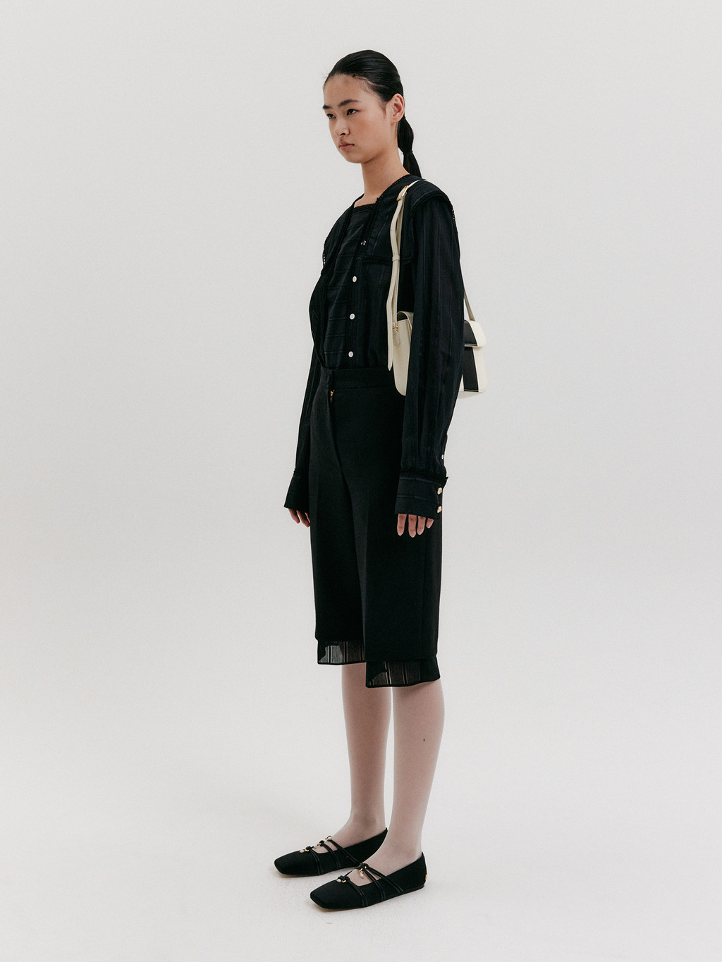 - The product worn by the model is a sample and is produced based on size S. However, there may be differences in total length and detailed sizes compared to the final product. Please refer to the detailed measurements provided on the product page for accurate sizing information.