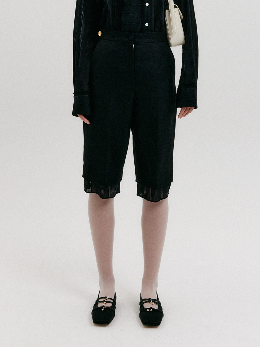 - Bermuda-length layered shorts