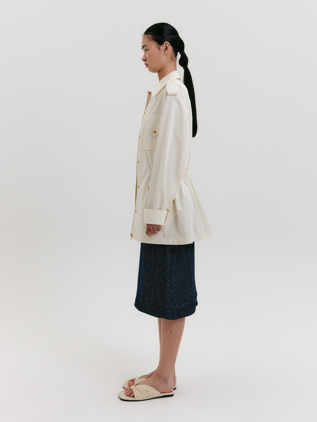- The product worn by the model is a sample and is produced based on size S. However, there may be differences in total length and detailed sizes compared to the final product. Please refer to the detailed measurements provided on the product page for accurate sizing information.