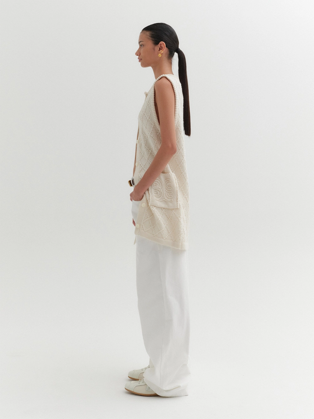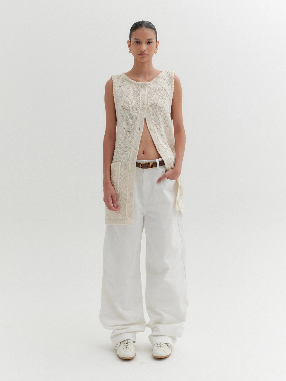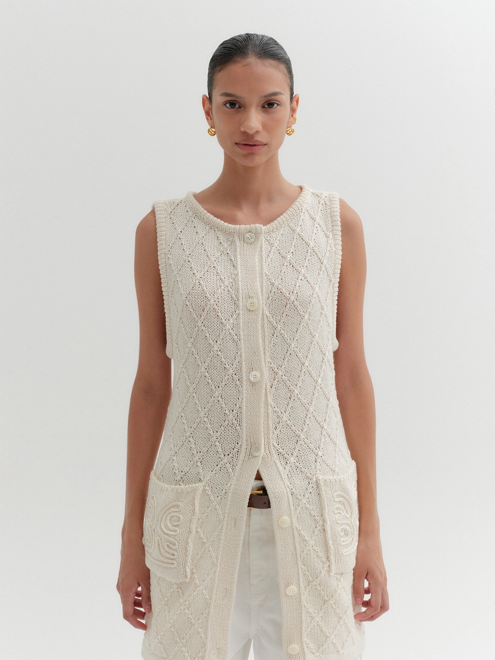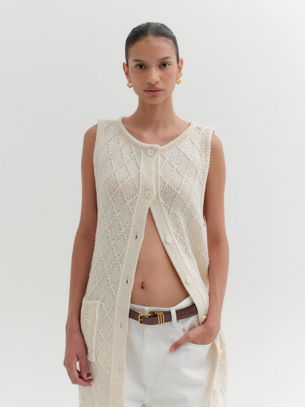 - Long-length knit vest