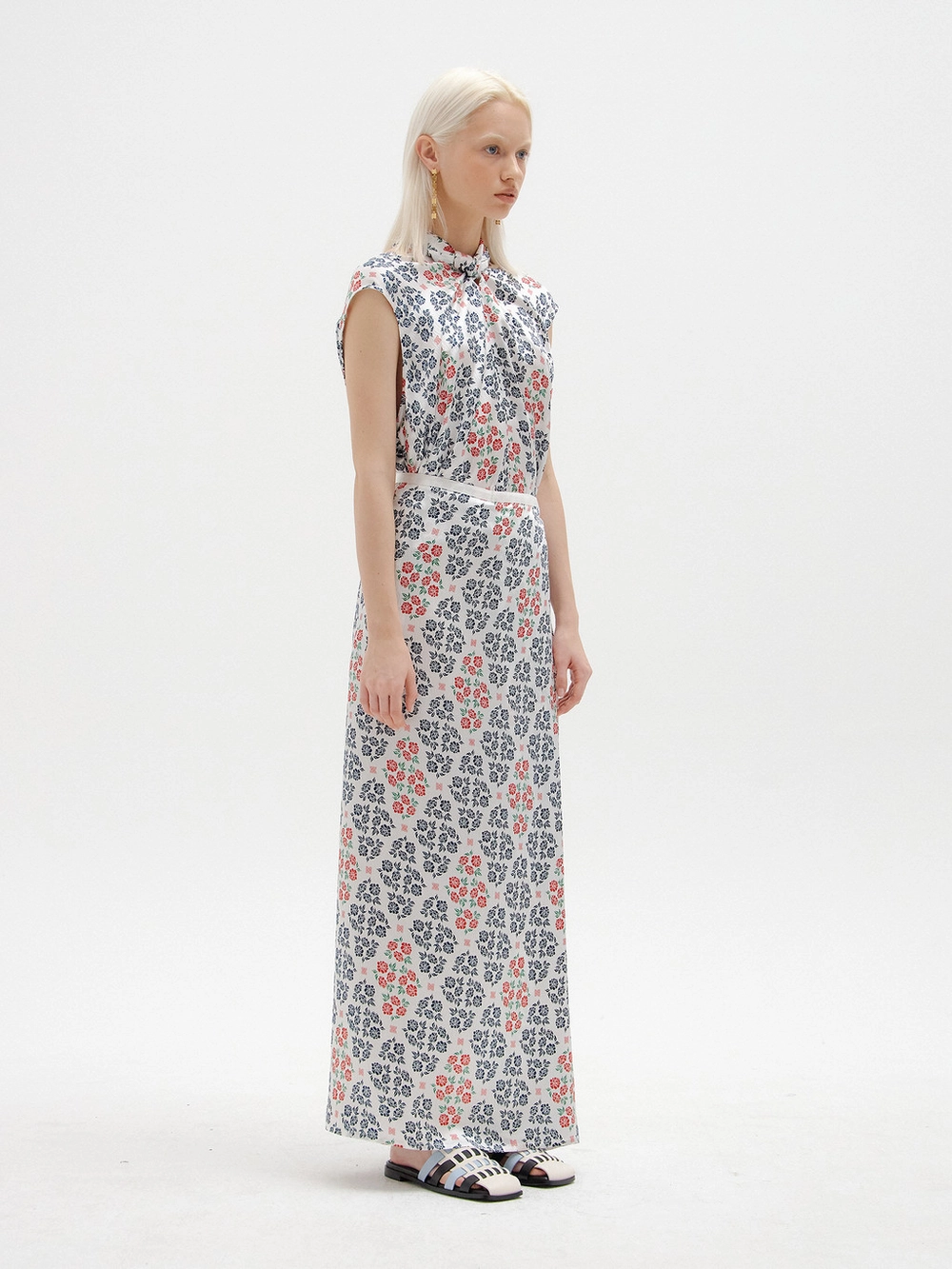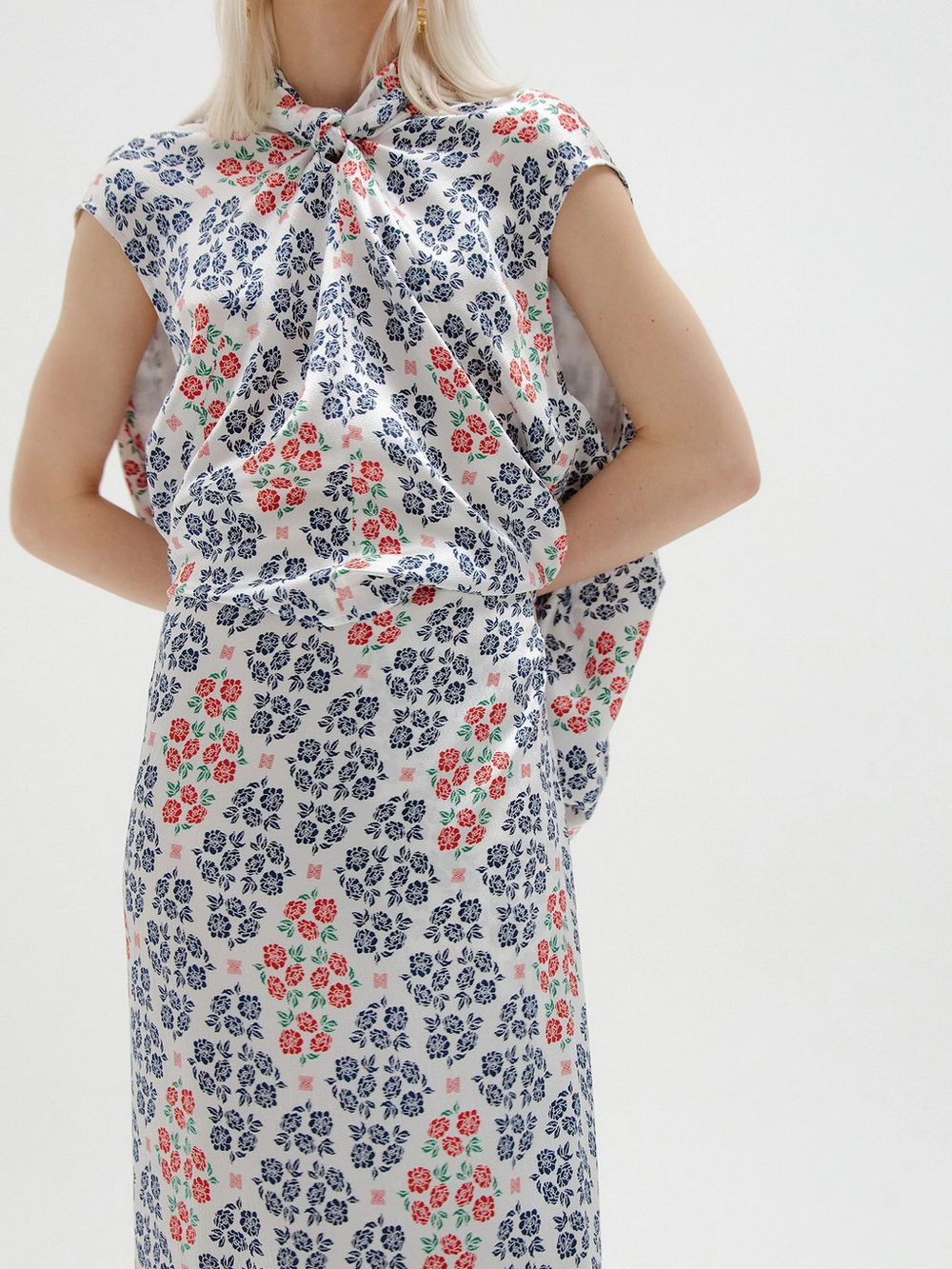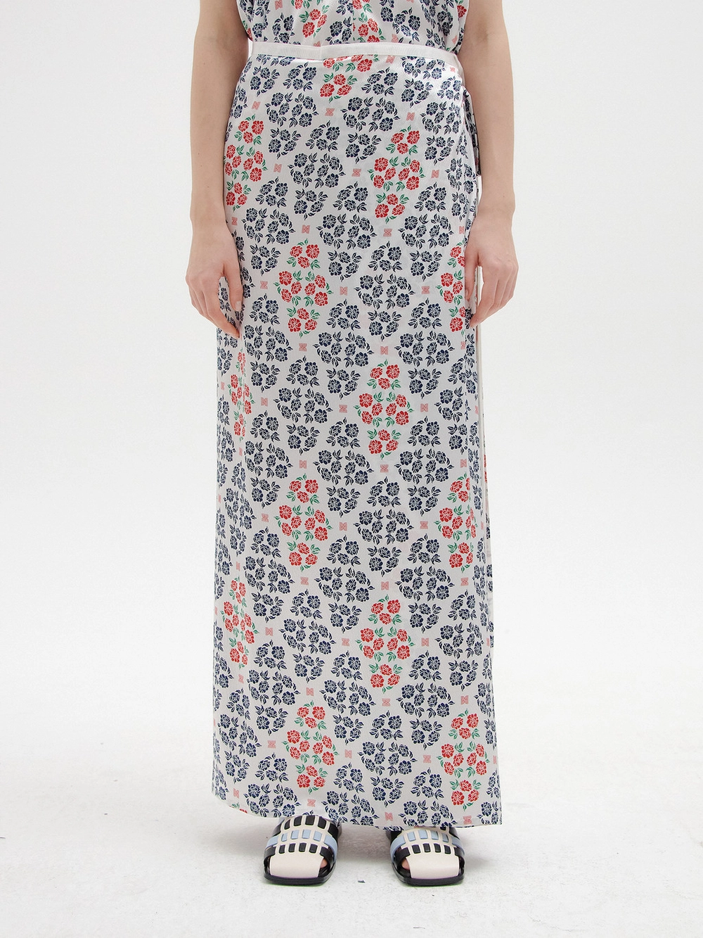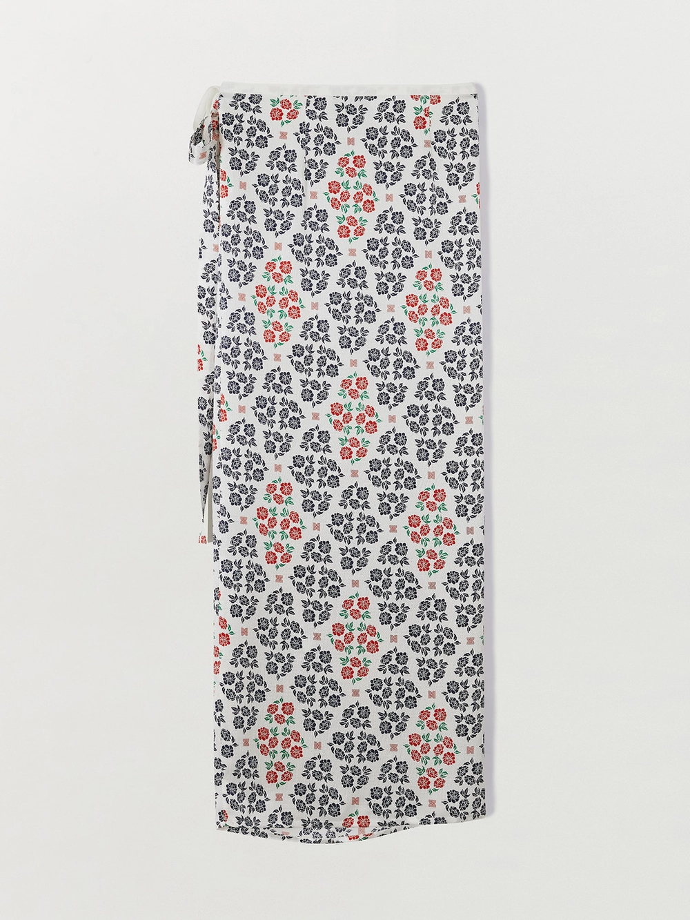 - Maxi wrap skirt made of exclusive floral pattern printed silk developed by EENK.