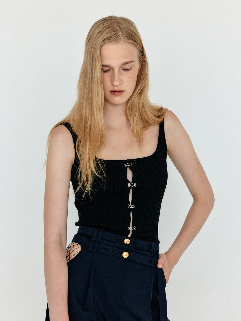 WESLE Bustier Knit Top - Black