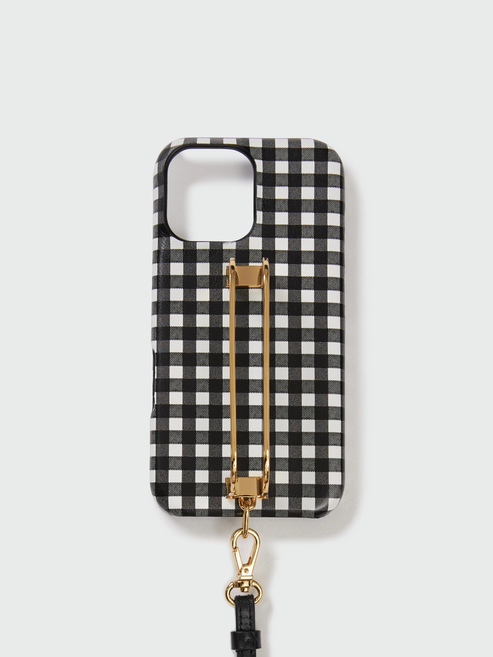Phone Case with Leather Strap Black Check