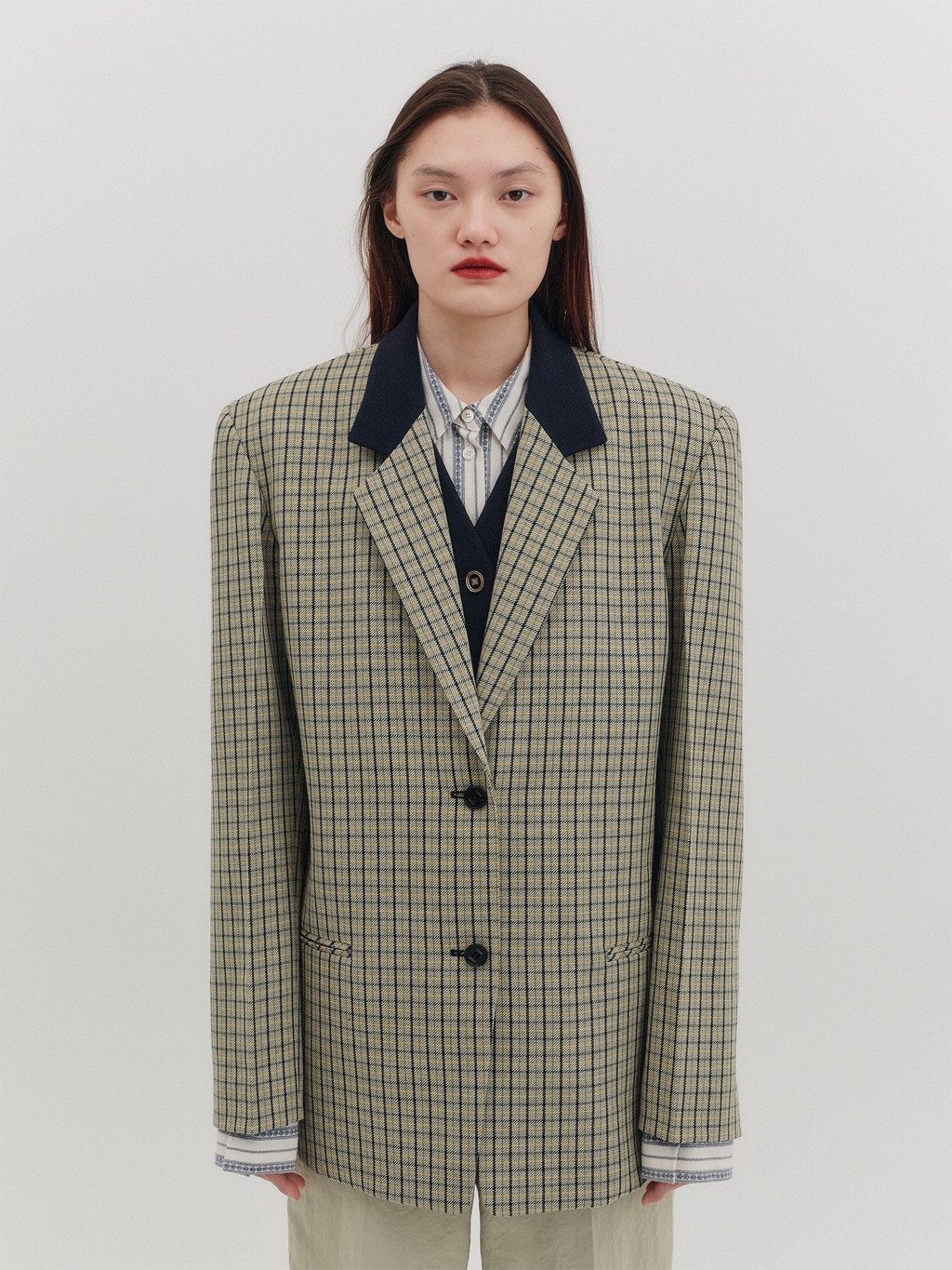 * The product worn by the model is a sample made in size S for the photoshoot. However, there may be differences in total length and specific measurements compared to the actual product. Please refer to the detailed measurements provided on the product page for accurate sizing.