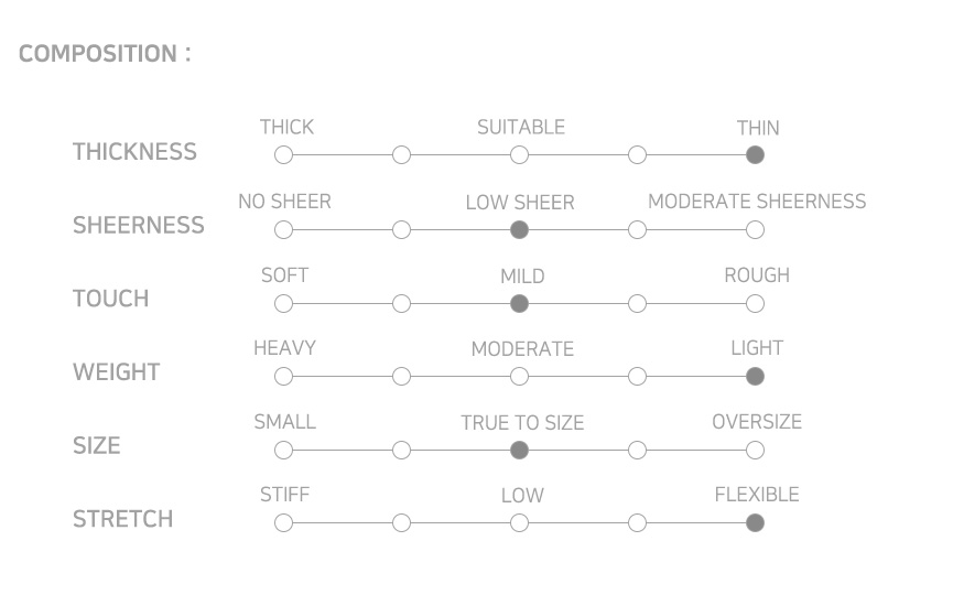 MATERIAL : Viscose 70%, Polyester 20%, Nylon 10% (Fabric from Italy)